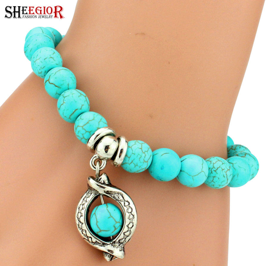 Blue Beads Love Bracelet Men Femme Vintage Blessing Bracelets & Bangles for Women Tree/Snake/Owl Pendants Bracelet Jewelry